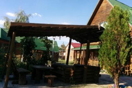 - Детская площадка (деревянные детские домики, песочница, батут)